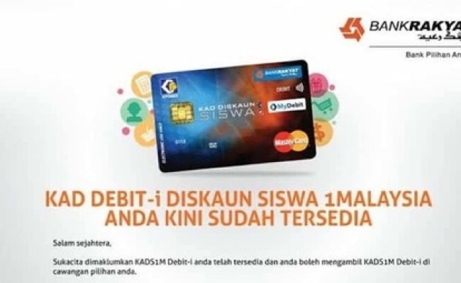 Berikut dikongsikan cara semakan kad debit pelajar kads1m 2020 secara online buat panduan kad pengenalan / ic. Kad debit pelajar yang berjumlah rm250 ini hanya boleh digunakan untuk membeli bahan ilmiah sahaja di kedai buku yang terpilih. Jkm petaling 29 october 2015 at 12:46. Cari tawaran terhebat kad debit di malaysia dengan imoney. Pasti ramai pelajar yang ingin mengetahui cara membuat semakan status permohonan kad debit pelajar (kads1m) dan juga cara membuat permohonan untuk tahun 2018. Mohon perhatian buat pelajar yang telah membuat permohonan kads1m. Tarikh akhir bagi pengambilan kads1m di semua cawangan bankrakyat adalah pada. Semakan bantuan pelajar pendidikan tinggi ini boleh dibuat di portal rasmi bank rakyat. Ia akan memerlukan pelajar untuk membuat permohonan kad debit pelajar di bank rakyat. Pelajar boleh membuat permohonan kad diskaun siswa bank rakyat bagi mendapatkan bantuan rm100 secara online bermula 1 april 2019 menerusi untuk pelajar yang masih belum mempunyai kad diskaun siswa bank rakyat (penerima bppt baharu). Permohonan boleh dibuat di pejabat kebajikan masyarakat daerah terdekat. Selain itu juga, fungsi kad debit ini sama seperti kad debit yang lain walaupun perbelanjaan yang dihadkan hanyalah sebanyak rm250. Permohonan kad debit pelajar 2020 online (kads1m)|bilakah tarikh permohonan kad debit pelajar kads1m bagi tahun 2019?